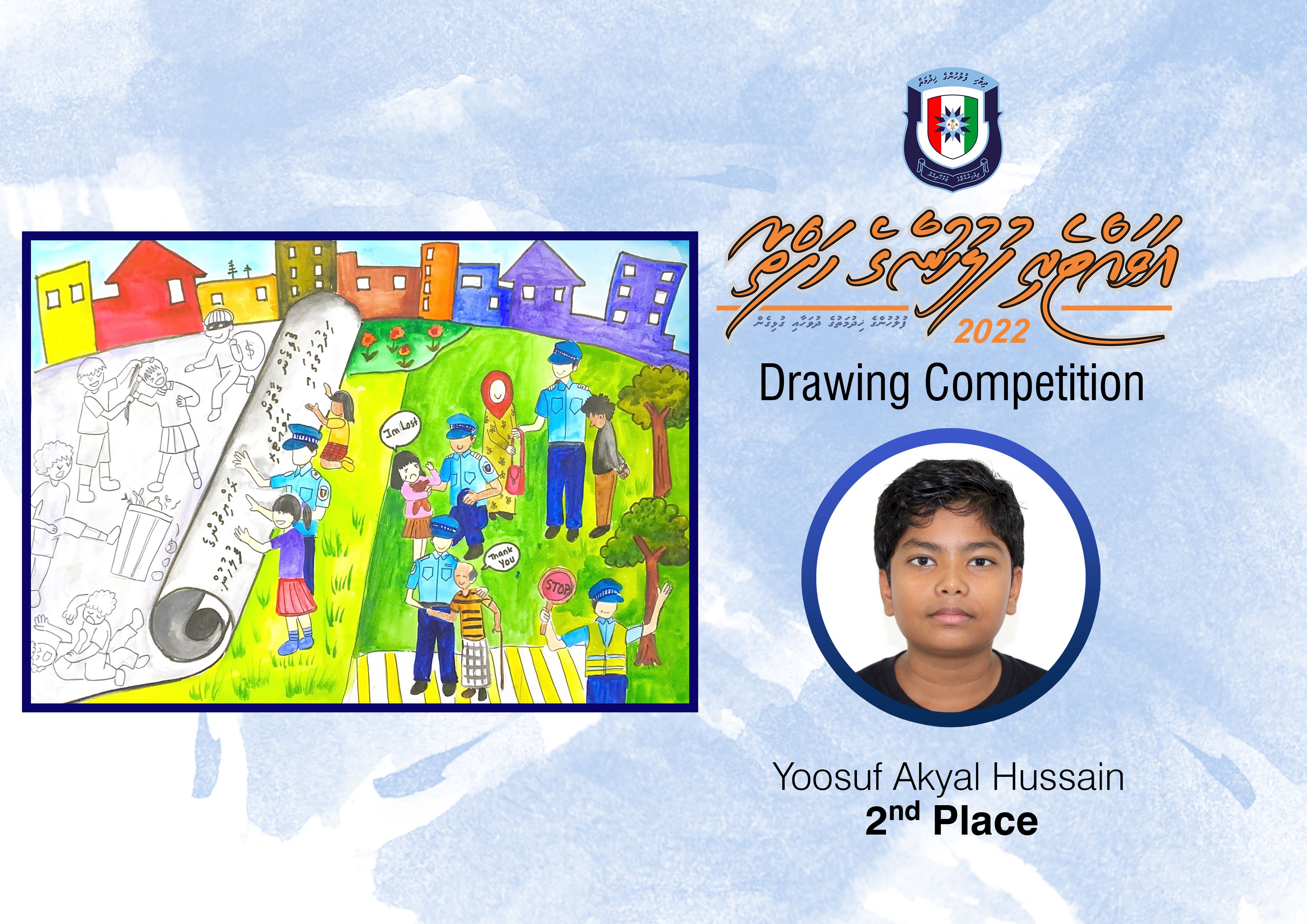 ‘’ގުޅިގެން، ގާތުން، ރައްޔިތުންގެ ޚިދުމަތުގައި އަވައްޓެރި ފުލުހުން”ތީމުގެ ދަށުން ކުރިއަށް ގެންދިޔަ މި މުބާރާތުގެ ދެވަނަ ޔޫސުފް އަކްޔަލް ޙުސައިން ހޮވުނުއިރު، 3 ވަނަ އަށް ހޮވިފައިވަނީ އަޙްމަދު އާހިލް ޚަލީލްއެވެ.