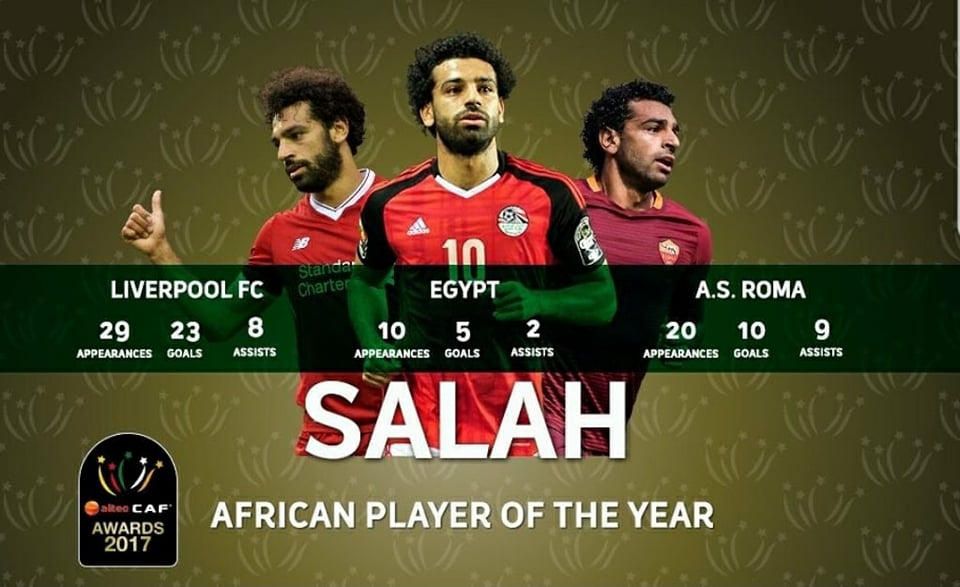 2017 ވަނަ އަހަރު އެފްރިކާ ބައްރުގެ އެންމެ މޮޅު ކުޅުންތެރިޔާގެ މަގާމު ލިވަޕޫލްގެ މެދުތެރެ ބަލަހައްޓަމުން ގެންދާ މިސްރުގެ މުހައްމަދު ސަލާޙް ހޯދާއިފިއެވެ.