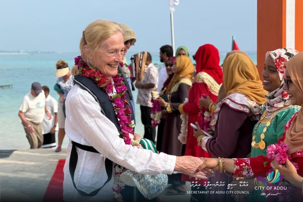 100 އެއްހާ ފަތުރުވެރިންނާއެކު އައްޑޫސިޓީއަށް އައި ލަގްޒަރީ ކްރޫޒް ޝިޕުން އައި ފަތުރުވެރިންނަށް އައްޑޫއިން ހޫނުމަރުހަބާއެއް ކިޔައިފިއެވެ.