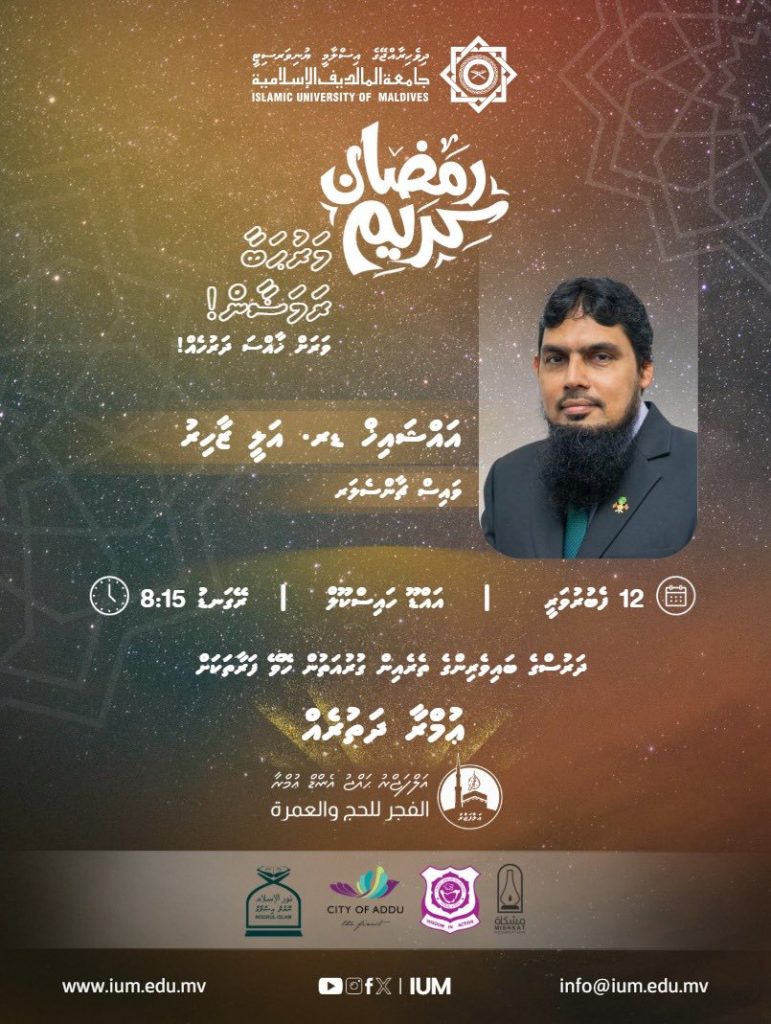 މާތްވެގެންވާ ރަމަޟާން މަހާއި ބައްދަލުވާއިރު، ރަމަޟާން މަހަށް މަރުޙަބާ ކިޔުމުގެ ގޮތުން، “ރަމަޟާން މަހަށް ތައްޔާރުވަމާ!” “މަރުޙަބާ ރަމަޟާން” ގެ ނަމުގައި އިސްލާމިކް ޔުނިވަރސިޓީ އޮފް މޯލްޑިވްސް (އައިޔޫމް) އާއި އަލްފަޖްރު ފައުންޑޭޝަނުން ގުޅިގެން އައްޑޫސިޓީގައި ދަރުސް ފޯރަމެއް ބޭއްވުމަށް ހަމަޖައްސަވައިފި އެވެ.