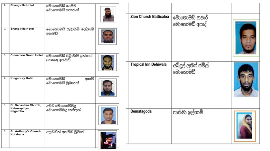 މިދިޔަ އޭޕްރިލް މަހުގެ 21 ވަނަ ދުވަހު އަވަށްޓެރި ސްރީލަންކާގެ އެކި ސަރަހައްދުތަކަށް ބޮމުގެ ހަމަލާތައް ދިން މީހުންގެ ފޮޓޯތައް އެ ގައުމުގެ ސަލާމަތީ ބާރުތަކުން އާއްމުކޮށްފިއެވެ.